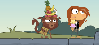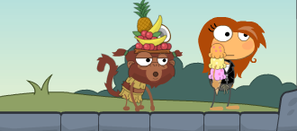 Veggie Monkey: Veggie Monkey is a monkey with ingredients fit for a refreshing drink (sound familiar?) on her head.